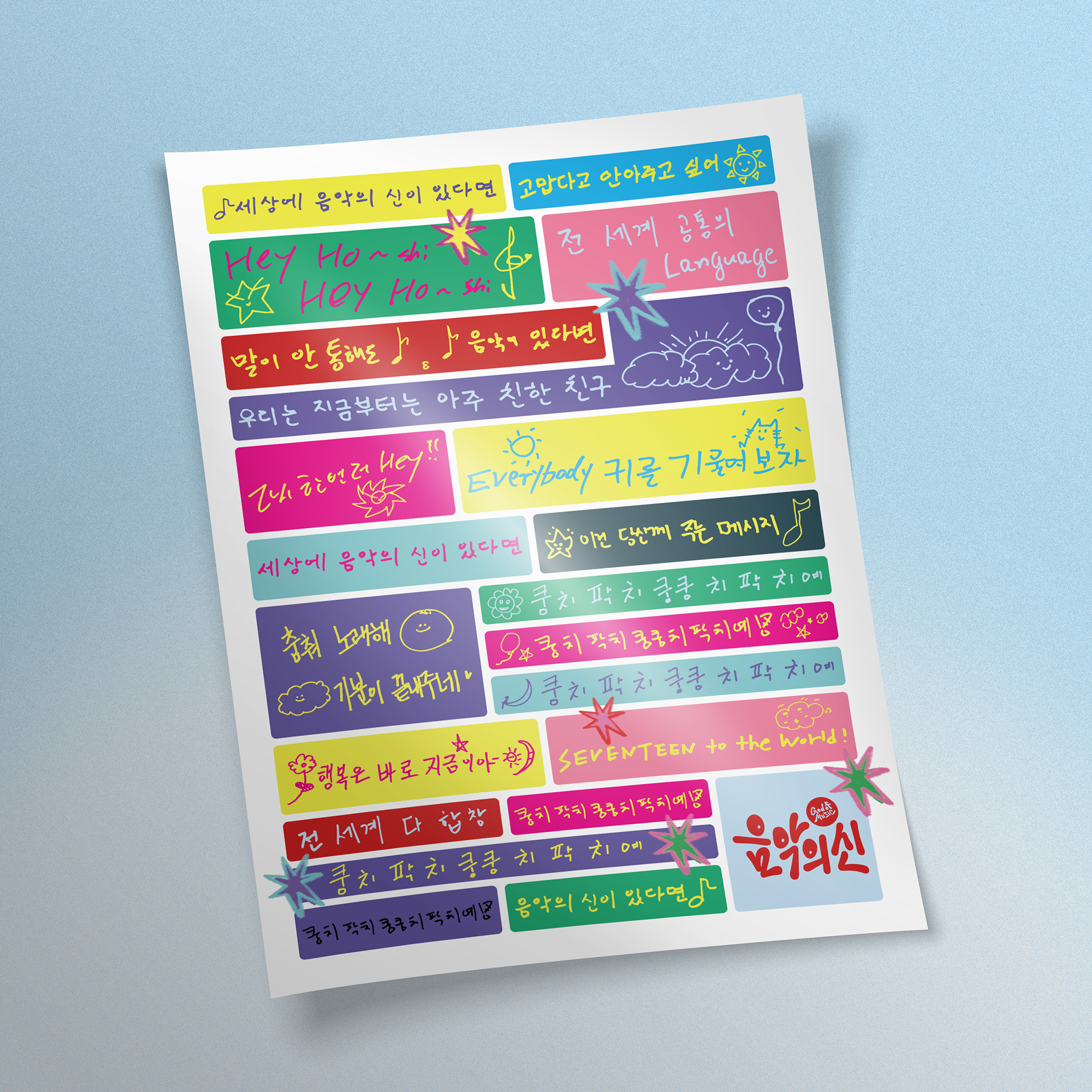 아티스트 손글씨와 미니11집 아트웍을 활용한 엽서 및 스티커 디자인
